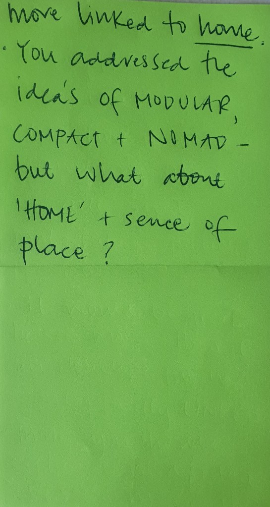 - Yes – modular and compact, but how does this relate to “home” and sense of place?