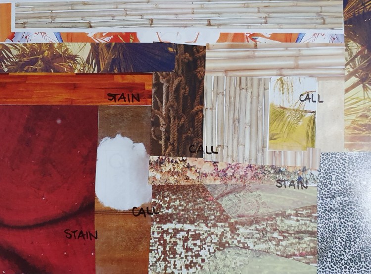 - these words I have found particularly interesting to work with and see how they are beginning to form robust connections not only with one and other but also with the area of research I am interested in pursuing. In a very simple and straight forward way these 5 words I have chosen to work with are very easily translated into physical things that happen either in the day to day life or even the design process not matter who is carrying out the practice. Whether it is the final outcome that has stained wood (stain), traces of saws (trace), a knock on the corner that has taken off a bit of timber (decay), the edge of the surfaces that has been screwed together (boundary), or even the communication and talking that goes on between people as the work is getting done (call). These words are physically evident in the design process.