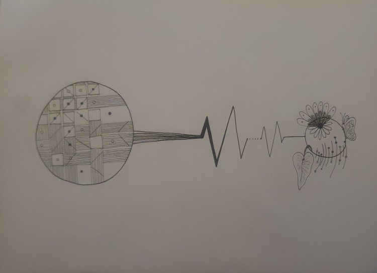 - drawing has to be one of my favourite past times, even though as a child and teenager I was really interested in creating and drawing things to be as realistic as possible and was always unhappy with the outcome when it didn’t turn out how I had imagined. This was when I stumbled across what I like to call metaphorical abstract drawing (I made it up myself). This is a process of drawing that acts as a brain dump in a drawn form instead of a word from. where the ideas that are swarming around in my head can be translated into symbols, lines and dots and everything in-between to create almost like a secret message in the drawing that I have created. Solid coloured shapes usually representing things I have struggled with or things that are troubling. Thin repeated lines represent the focus and attention that something has. thick and over drawn lines to represent confusion and almost anger of situations that have occurred. Hollow shapes are left empty and blank as they are yet to be filled. Rounded renders and life like illustrations to express the freedom and creativity that is still burning inside me.
