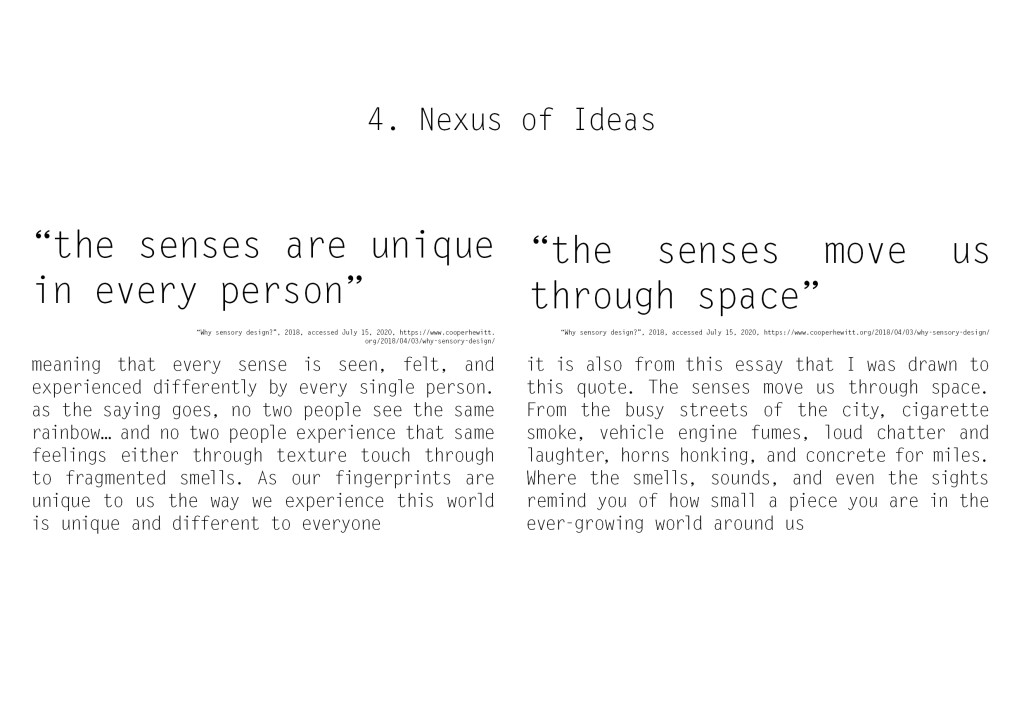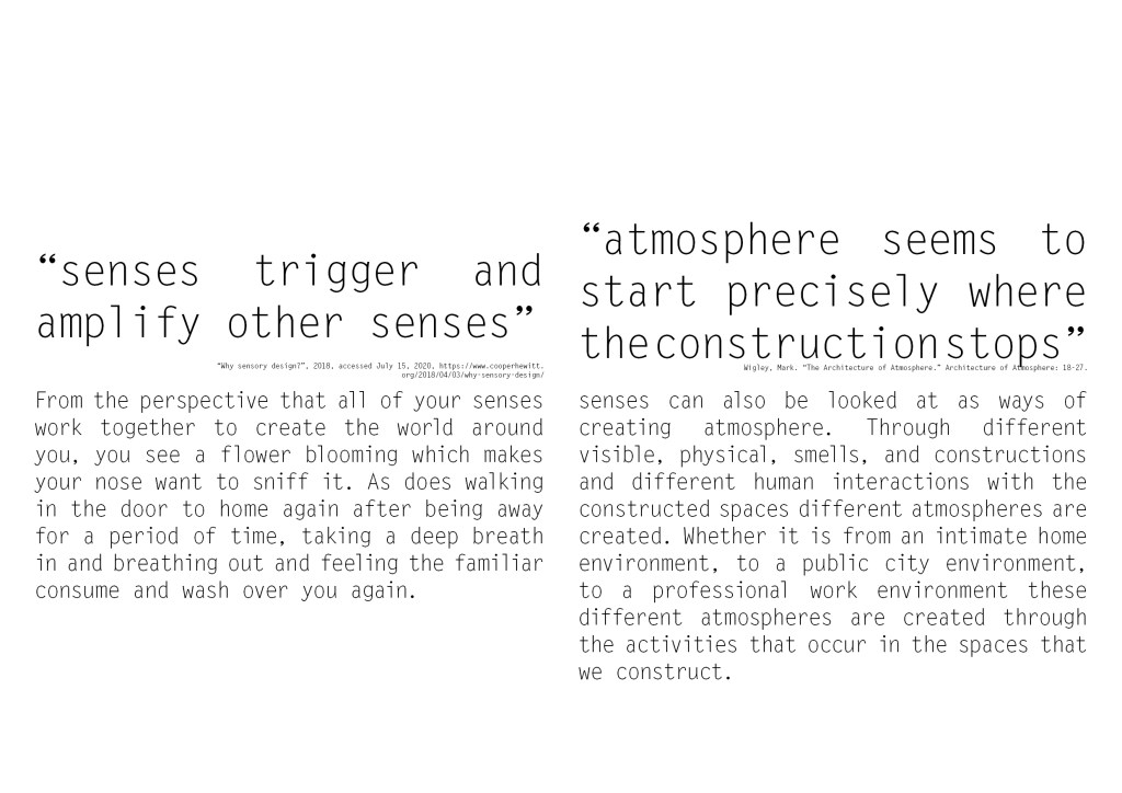 - “Why Sensory Design?” Excerpt from: The senses: Design Beyond Vision, Ellen Lupton, 2018, accessed July 15, 2020, https://www.cooperhewitt.org/2018/04/03/why-sensory-design/#:~:text=Sensory%20design%20activates%20touch%2C%20sound,regardless%20of%20our%20sensory%20abilities.