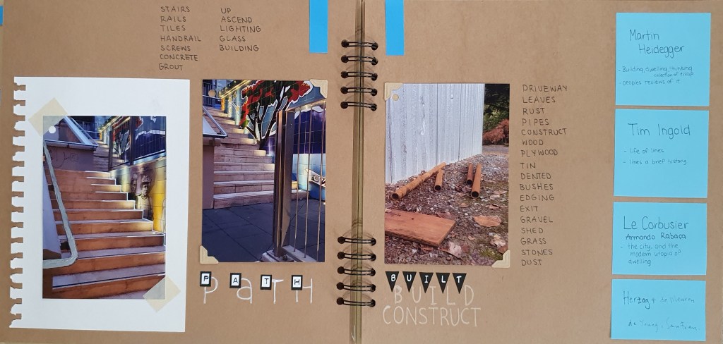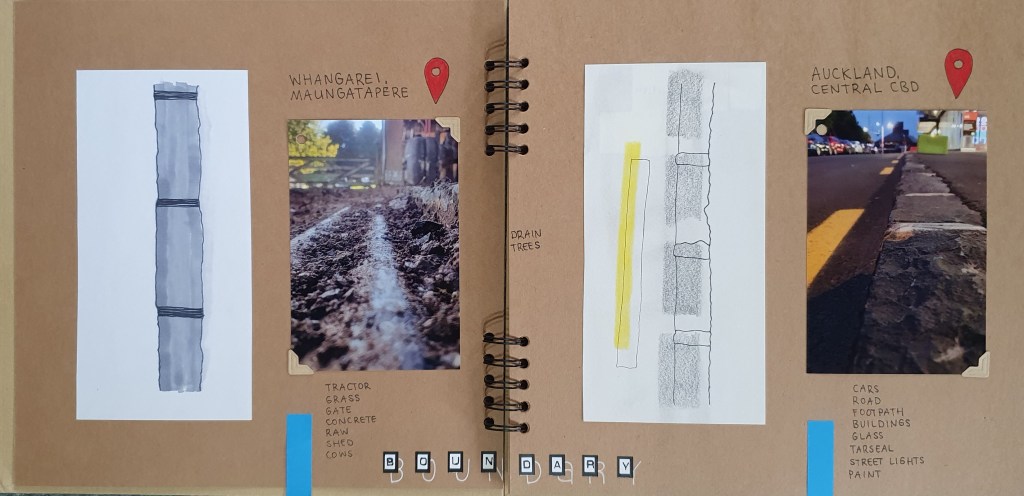 Taking the line that divides 2 different materials, 2 different surfaces, 2 different components and forms a connection between. 2 different spaces and locations that I have decided to call city and country for the duration of my project with the goal to form larger connections between myself and these spaces that I call home. Country can be viewed as a sand base littered with random clumps of grass, fallen leaves and hollows left behind from the past precipitation. On the other side of a concrete garden sleeper we can see a similar pattern of grass growing up between the impacted gravel that outlines the entrance and exit of the property through a 150 mitre long driveway. With materials and themes of brick, grass, leaves, sand, rain, change, and seeds being identified in this line image.