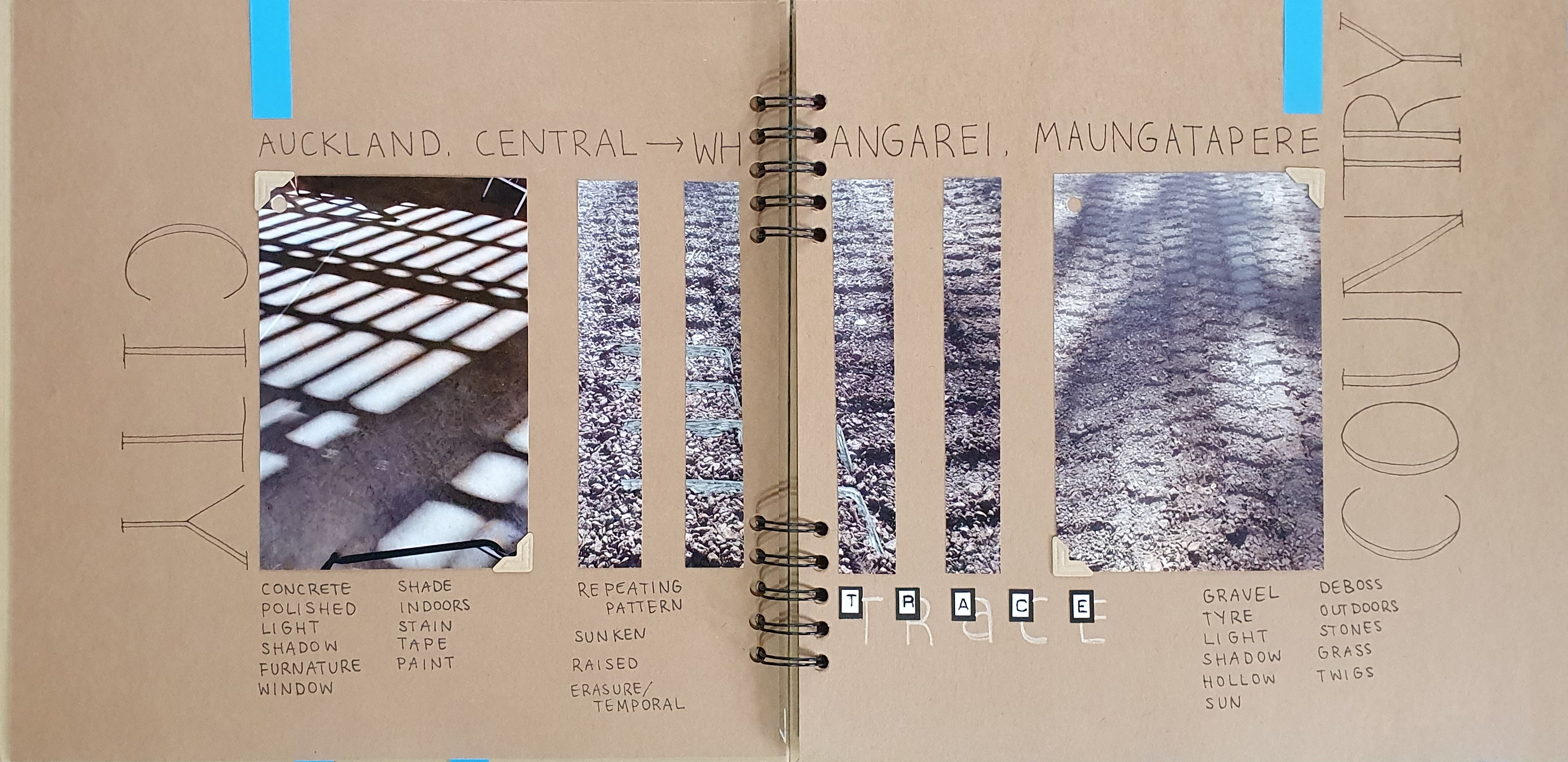 To understand what each of these spaces have in common and what differentiates the country from the city and vice versa we must first change our perspective and ground ourselves to the space that we are in. Through ground angles and a travelling long distance image we are able to see how these “completely different spaces” have a lot more in common than originally thought. A low angle of a gravel driveway, filled with dirt and sand can be seen in the foreground. Through the lifting of your eyes the view begins to change. Traveling down a concrete sleeper that lines the front of the farm shed a tractor, grass and even live animals can be seen. Caged behind a wooden gate more hills and trees continue into the distance. Raw and unrefined the country remains alive and every changing through the growth and energy each season brings.