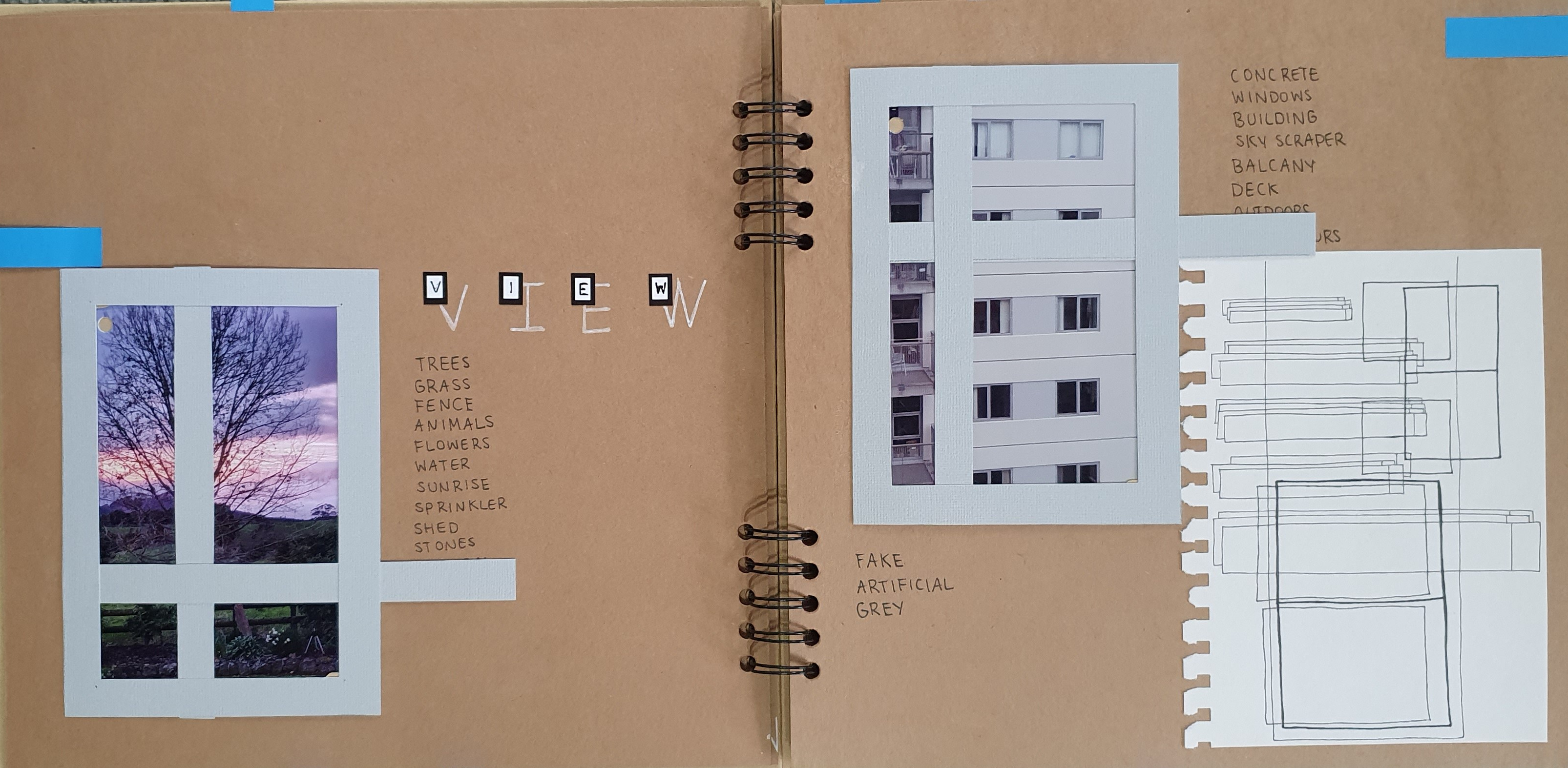 Taking the base of a scrapbook as the platform to present, conserve and relive these stationery points of home. Bounded by the 4 sides of the square the images are laid out within the constraints of the 297x297mm page spread. Playing on the idea of a family tree/photo album and how this is a place where memories are captured through a snippet in time, and following a scrapbooking layout to emphasis the growing and ever changing aspects of the 2 spaces. So, even though they are connected through these visual aspects at this point in time, as time proceeds their connection will change but it will still remain.