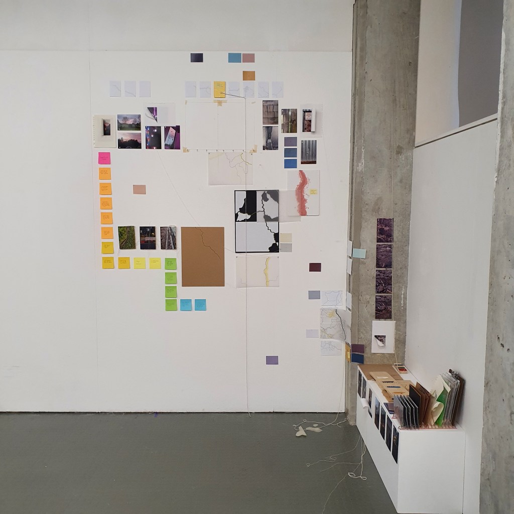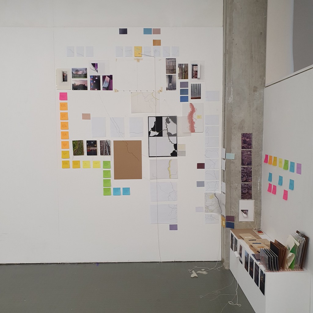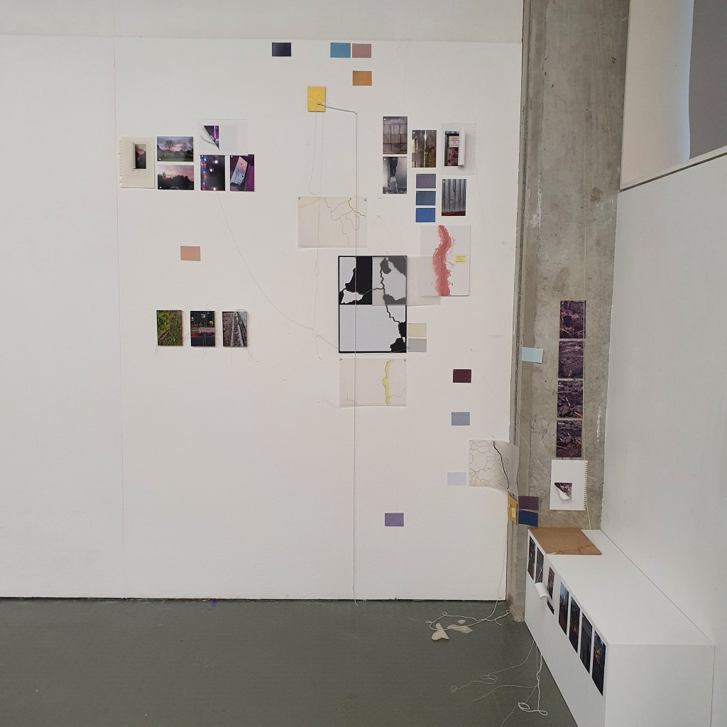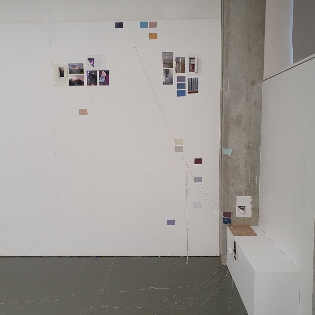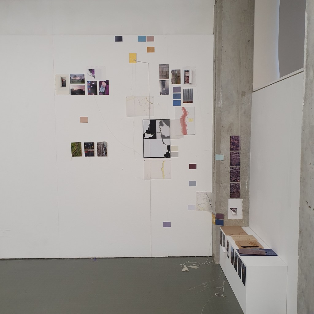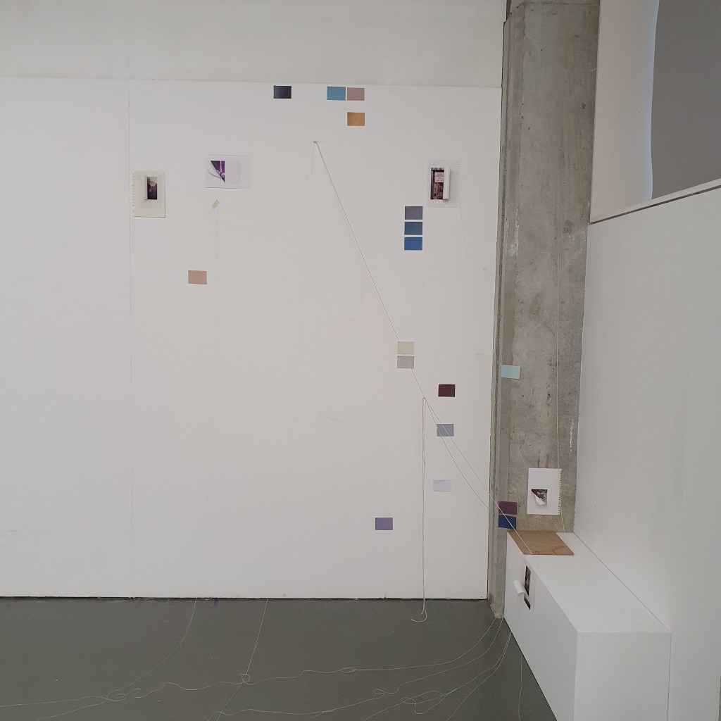 Pairing the work themes from the wall with themes that they did not connect to greately was a way that i could condense the work down without taking away its ability to be read at a later date. Sticking images and colour back to back t create little theme “packs”. and as the pieces got larger these packs began to be sides. one side of a borad would be one theme and when the board was flipped that theme was concealed and another theme was revealed, without the work having to be lost/forgotten.