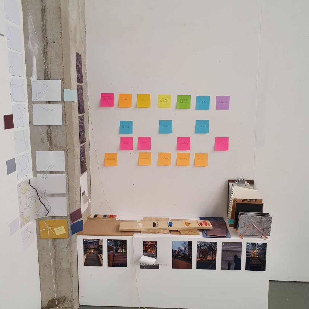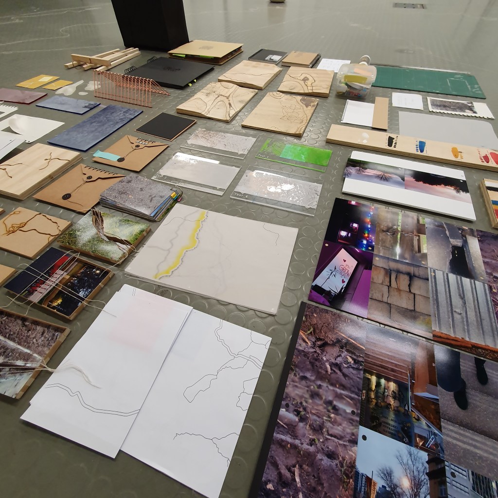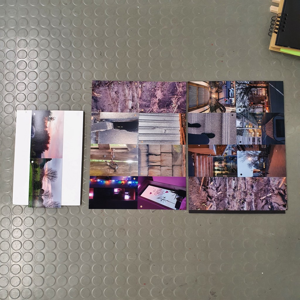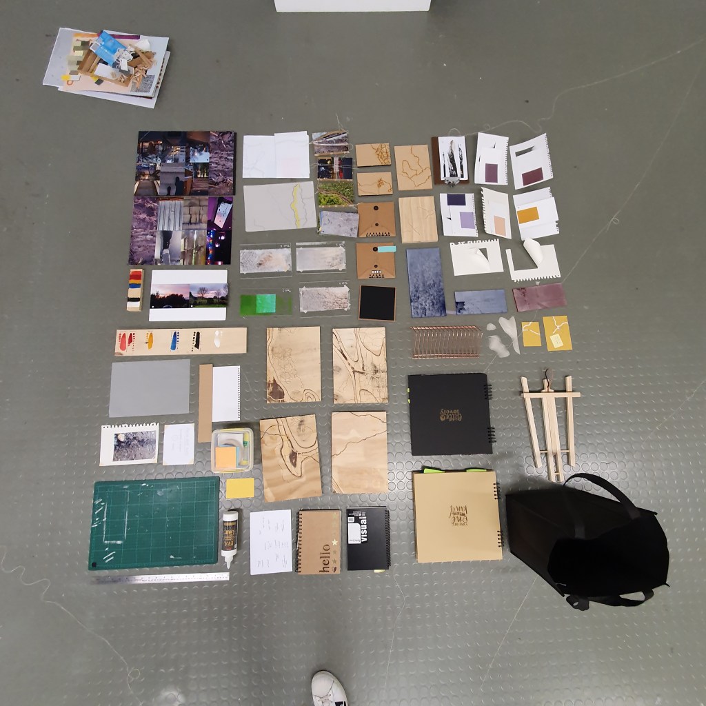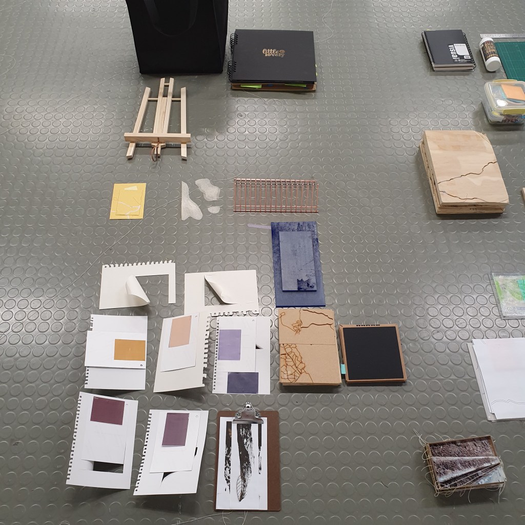 Pairing the work themes from the wall with themes that they did not connect to greately was a way that i could condense the work down without taking away its ability to be read at a later date. Sticking images and colour back to back t create little theme “packs”. and as the pieces got larger these packs began to be sides. one side of a borad would be one theme and when the board was flipped that theme was concealed and another theme was revealed, without the work having to be lost/forgotten.