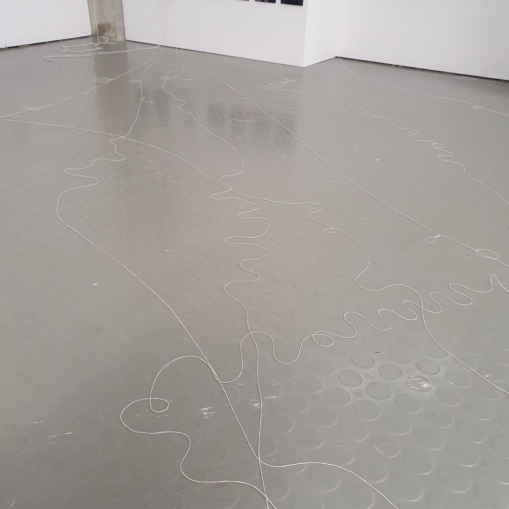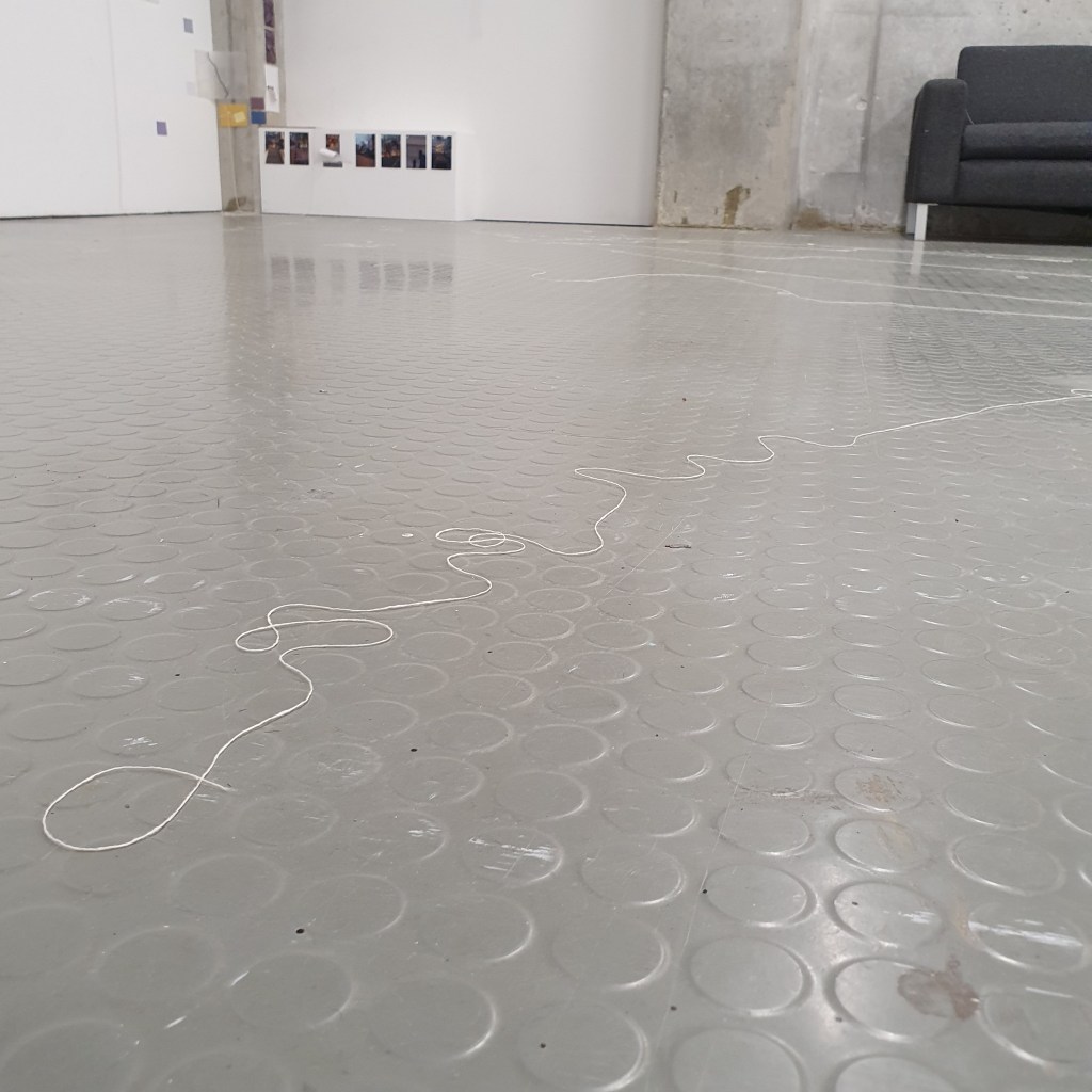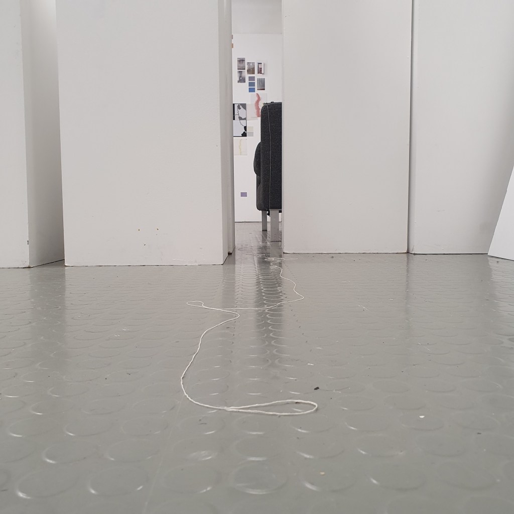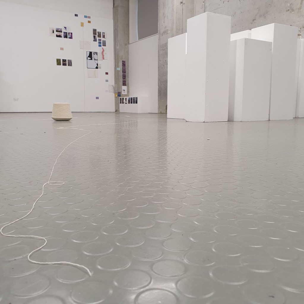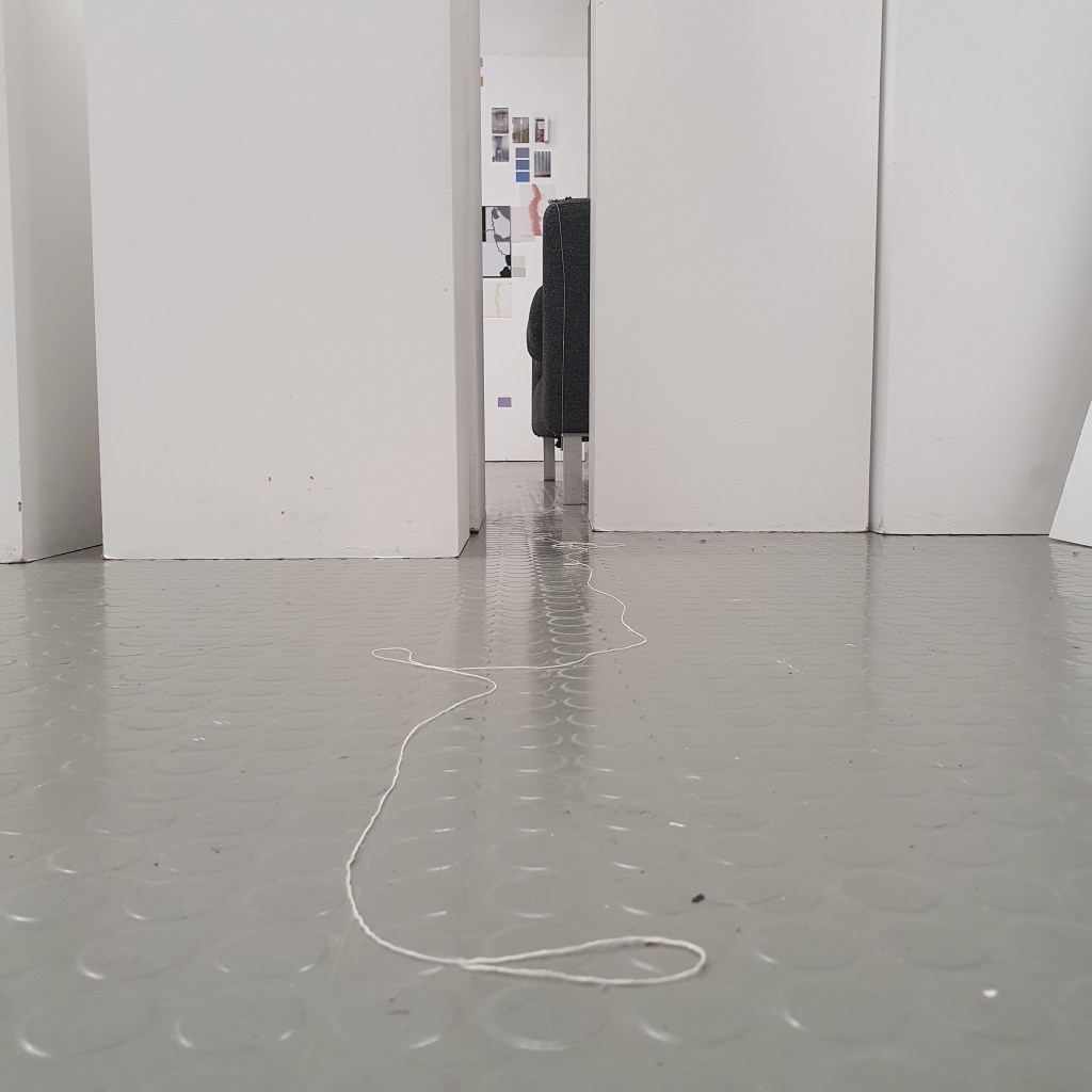 through my uninstallation process i also chose to reimagine the idea of a continuuos journey of the string thread and how this constant moving and never being tied down completely is the soul purpose of our being and we were made to grow, made to change, and made to change other people and things around us. Through the use of string in my presentaion i though it would be interesting to use this idea of connection and change and push it to an extreme. comepletly covering the internal space of the room where i presented and housed my collection of work i began to unravel, float, throw, knot, walk with, walk around, walk over, and just be with a series of different strings of tread. to see how the space would change, how my vision of the space would change. how through the use of something so small and something so commonly used in our day to day living the themes, ideas and goals of my research can be realised. less is more.