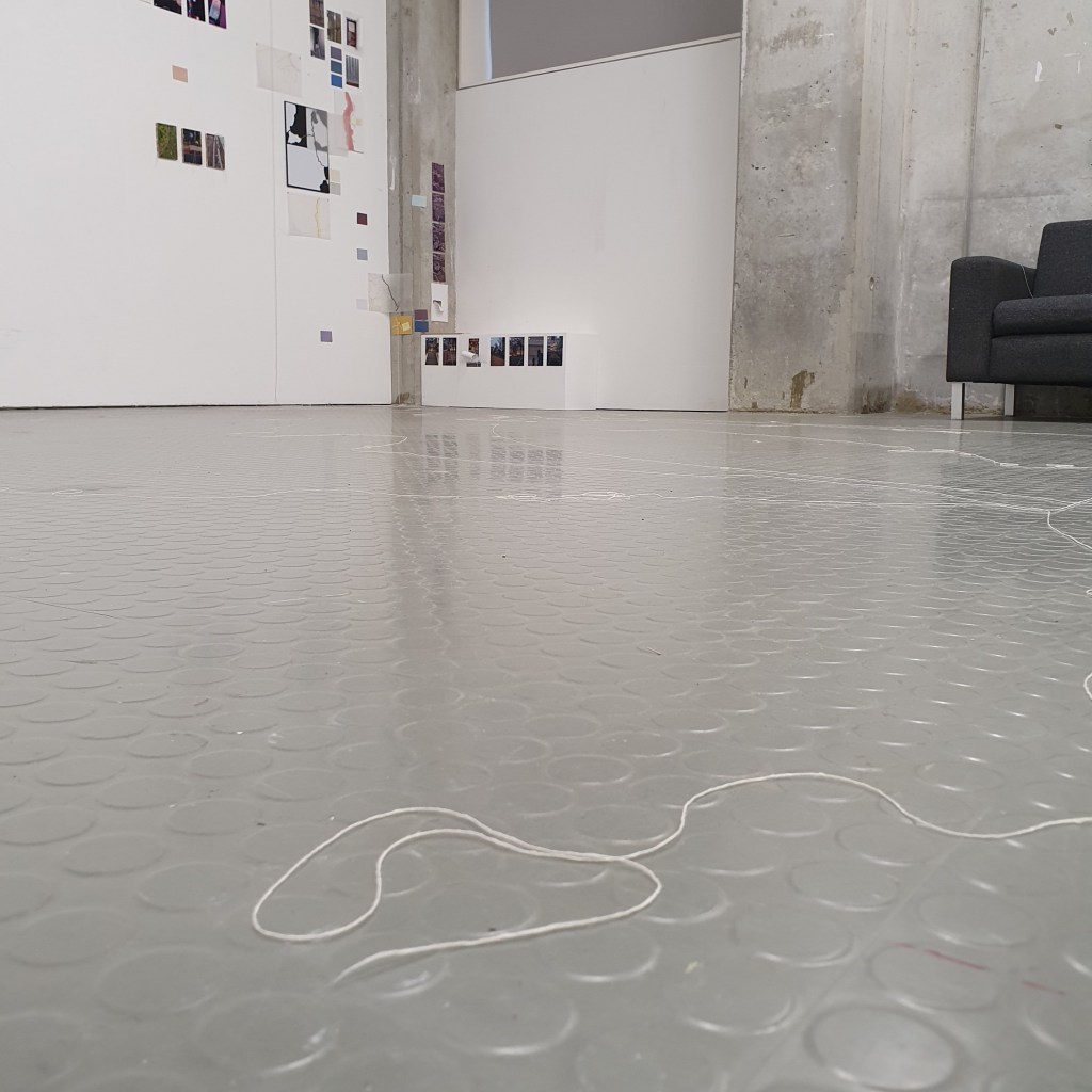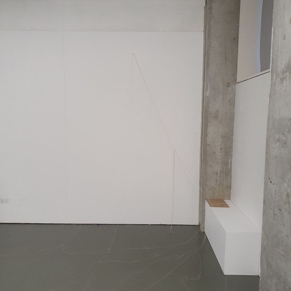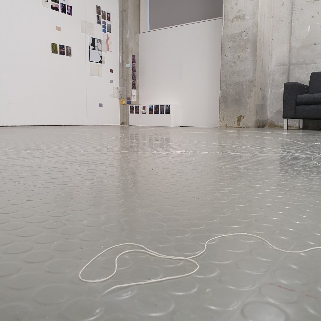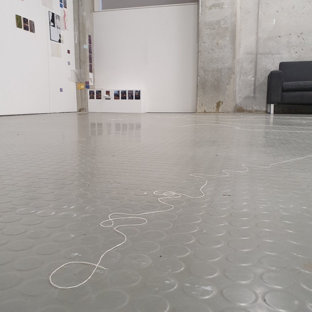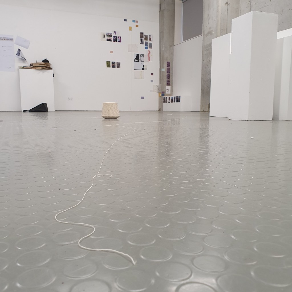 through my uninstallation process i also chose to reimagine the idea of a continuuos journey of the string thread and how this constant moving and never being tied down completely is the soul purpose of our being and we were made to grow, made to change, and made to change other people and things around us. Through the use of string in my presentaion i though it would be interesting to use this idea of connection and change and push it to an extreme. comepletly covering the internal space of the room where i presented and housed my collection of work i began to unravel, float, throw, knot, walk with, walk around, walk over, and just be with a series of different strings of tread. to see how the space would change, how my vision of the space would change. how through the use of something so small and something so commonly used in our day to day living the themes, ideas and goals of my research can be realised. less is more.