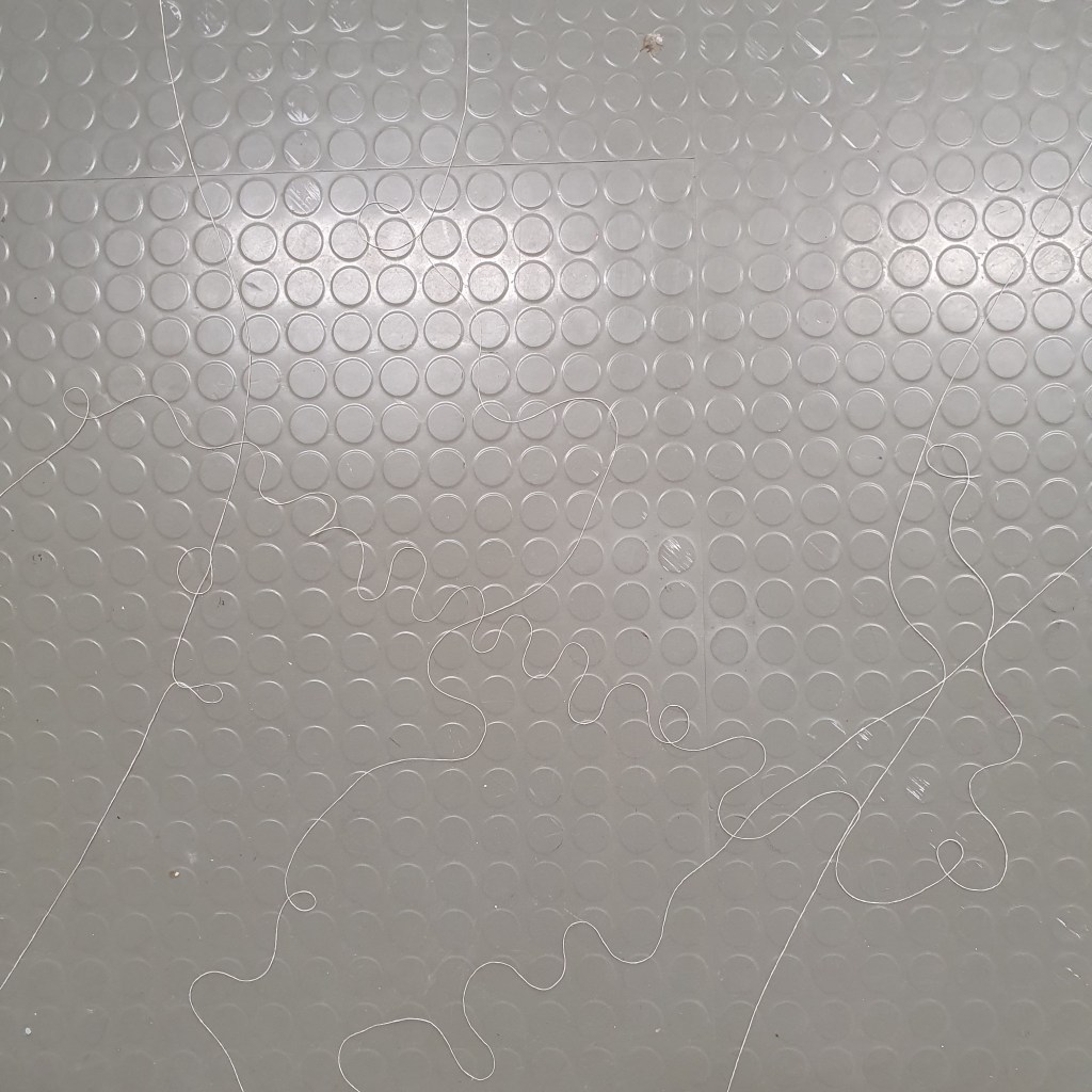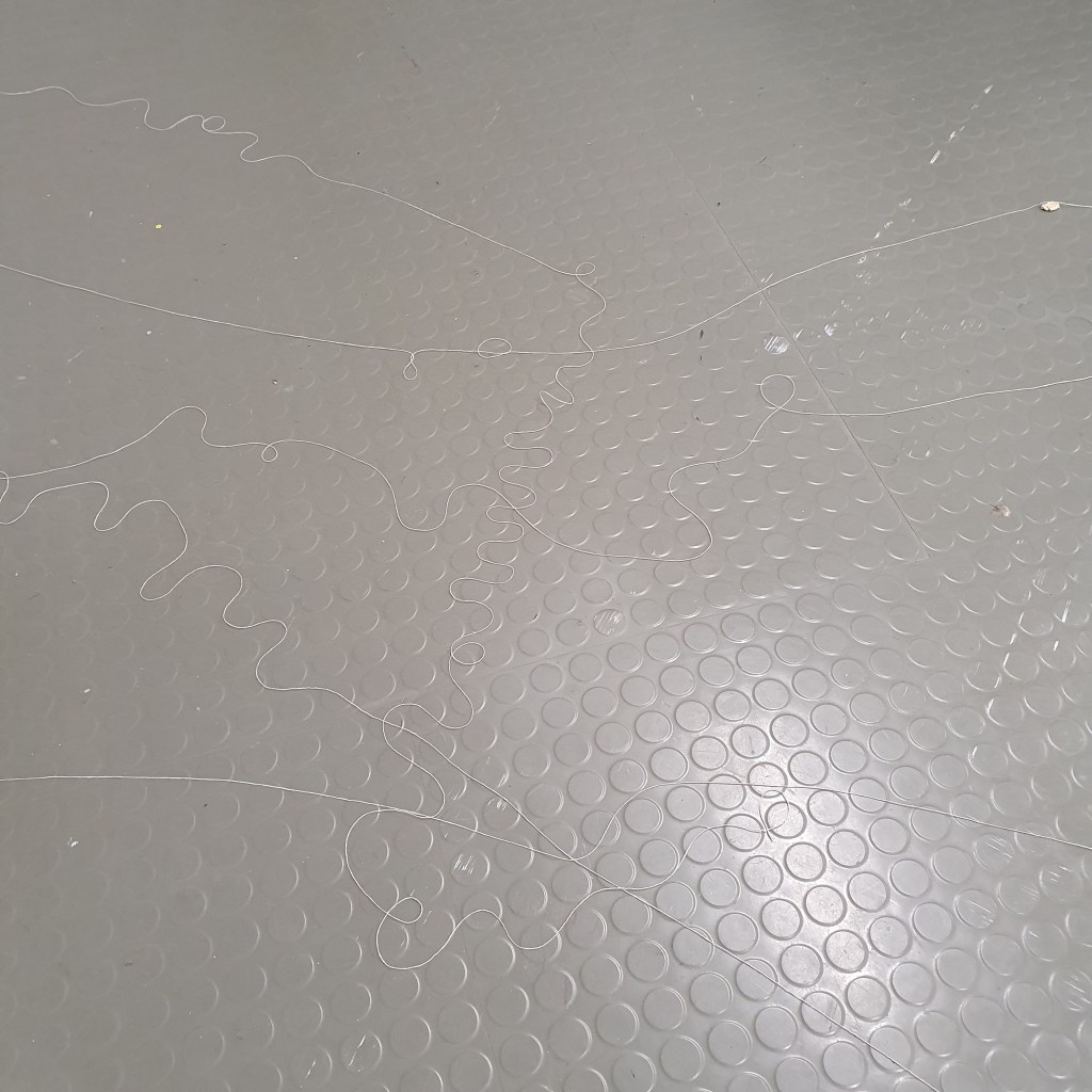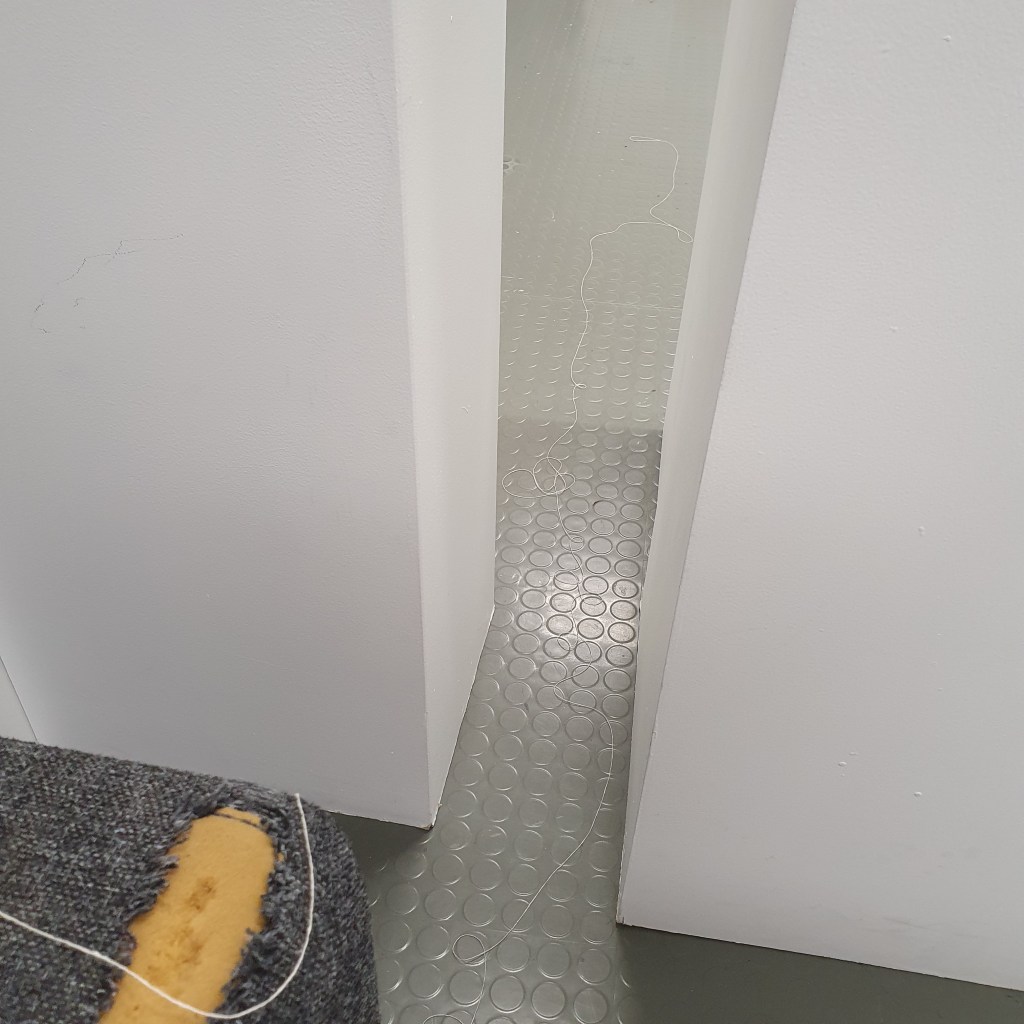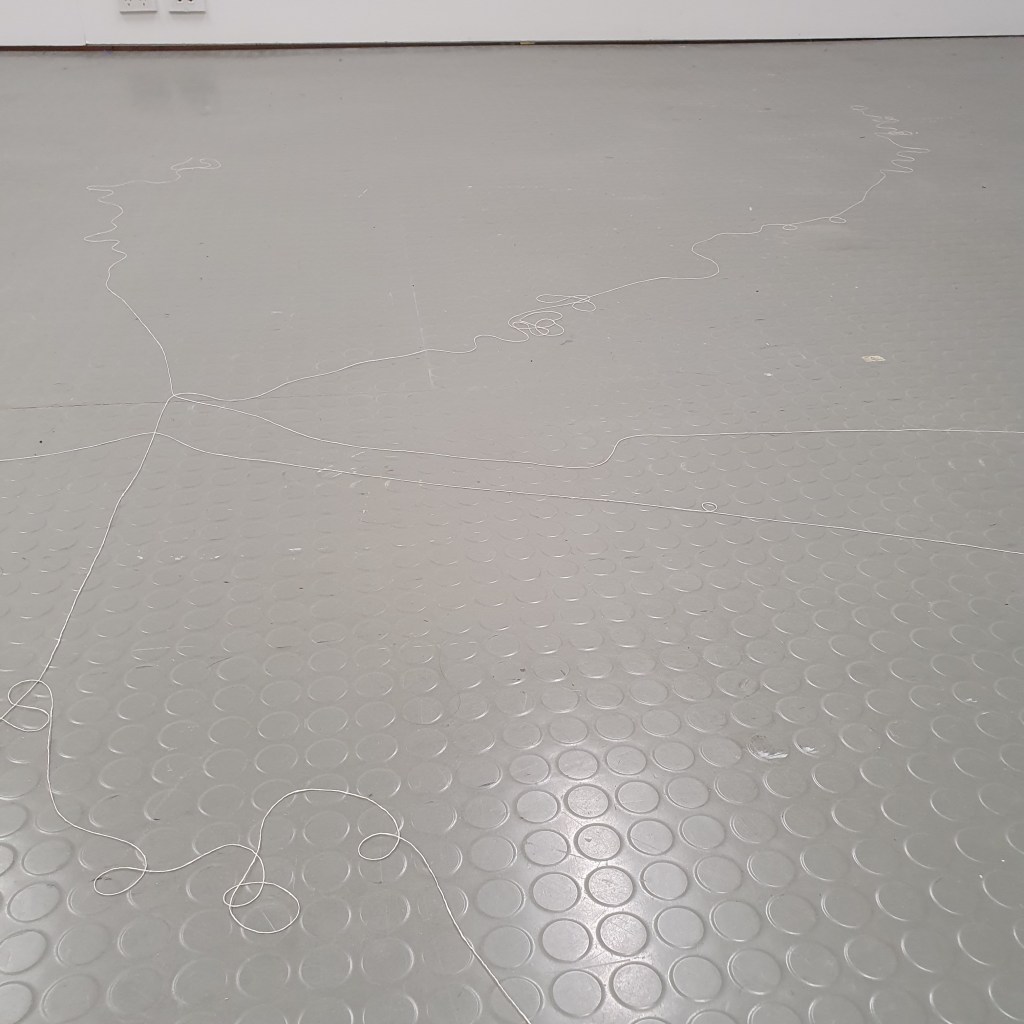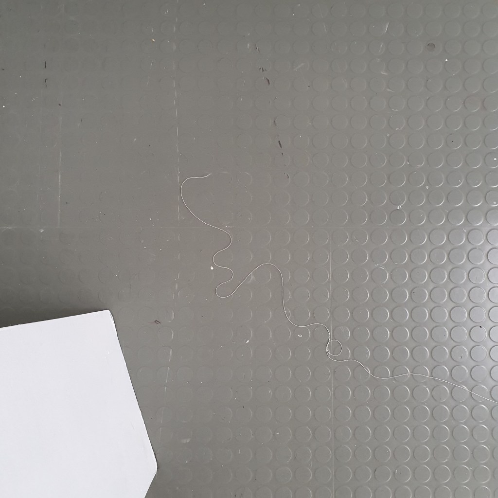through my uninstallation process i also chose to reimagine the idea of a continuuos journey of the string thread and how this constant moving and never being tied down completely is the soul purpose of our being and we were made to grow, made to change, and made to change other people and things around us. Through the use of string in my presentaion i though it would be interesting to use this idea of connection and change and push it to an extreme. comepletly covering the internal space of the room where i presented and housed my collection of work i began to unravel, float, throw, knot, walk with, walk around, walk over, and just be with a series of different strings of tread. to see how the space would change, how my vision of the space would change. how through the use of something so small and something so commonly used in our day to day living the themes, ideas and goals of my research can be realised. less is more.