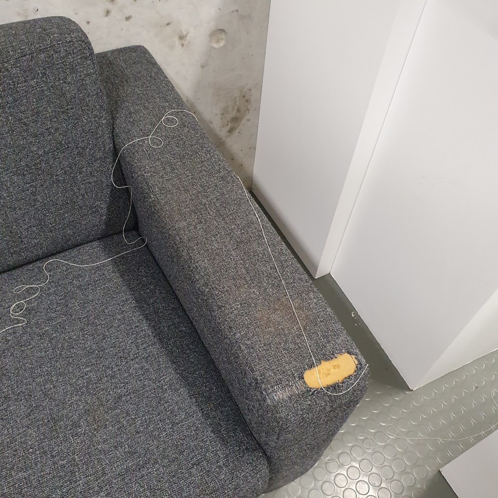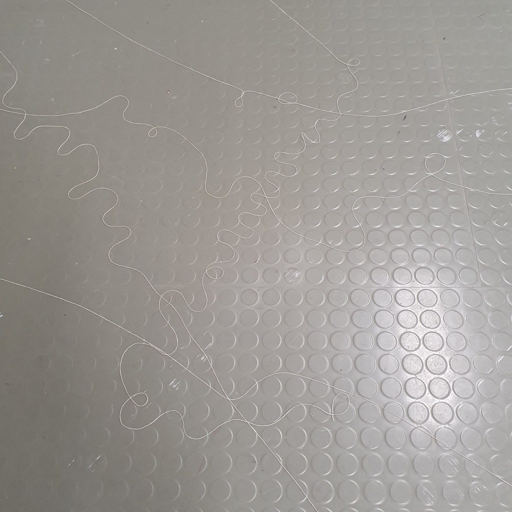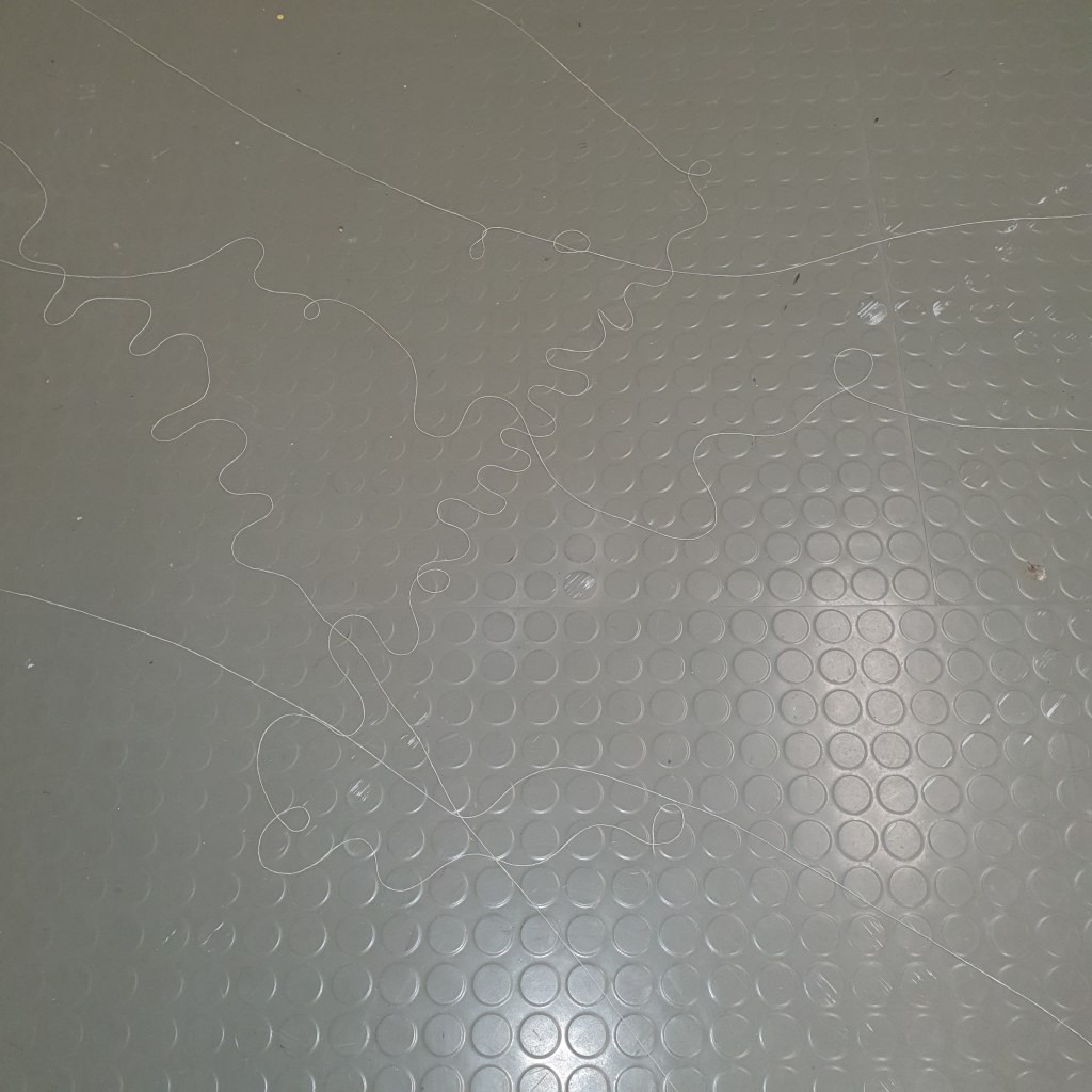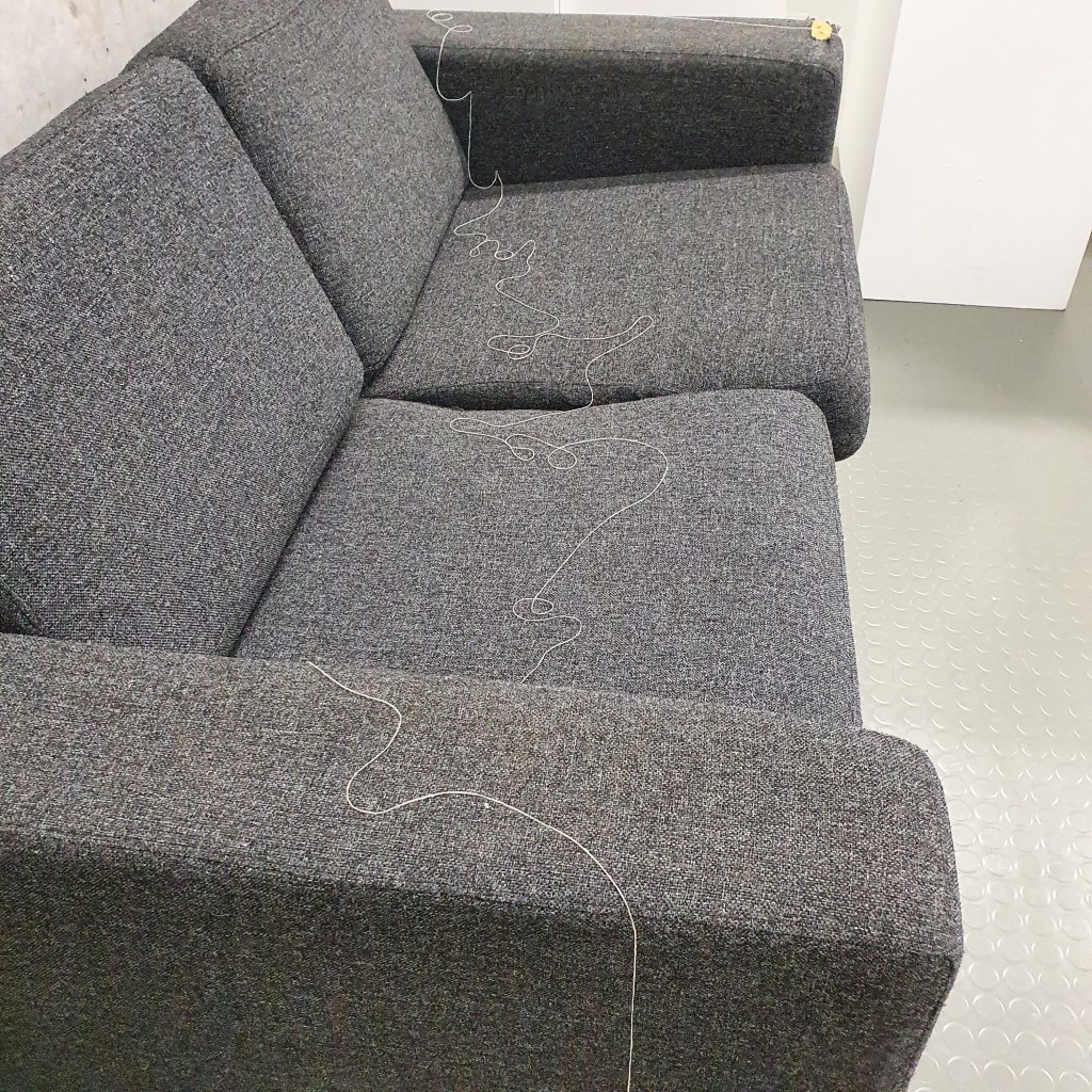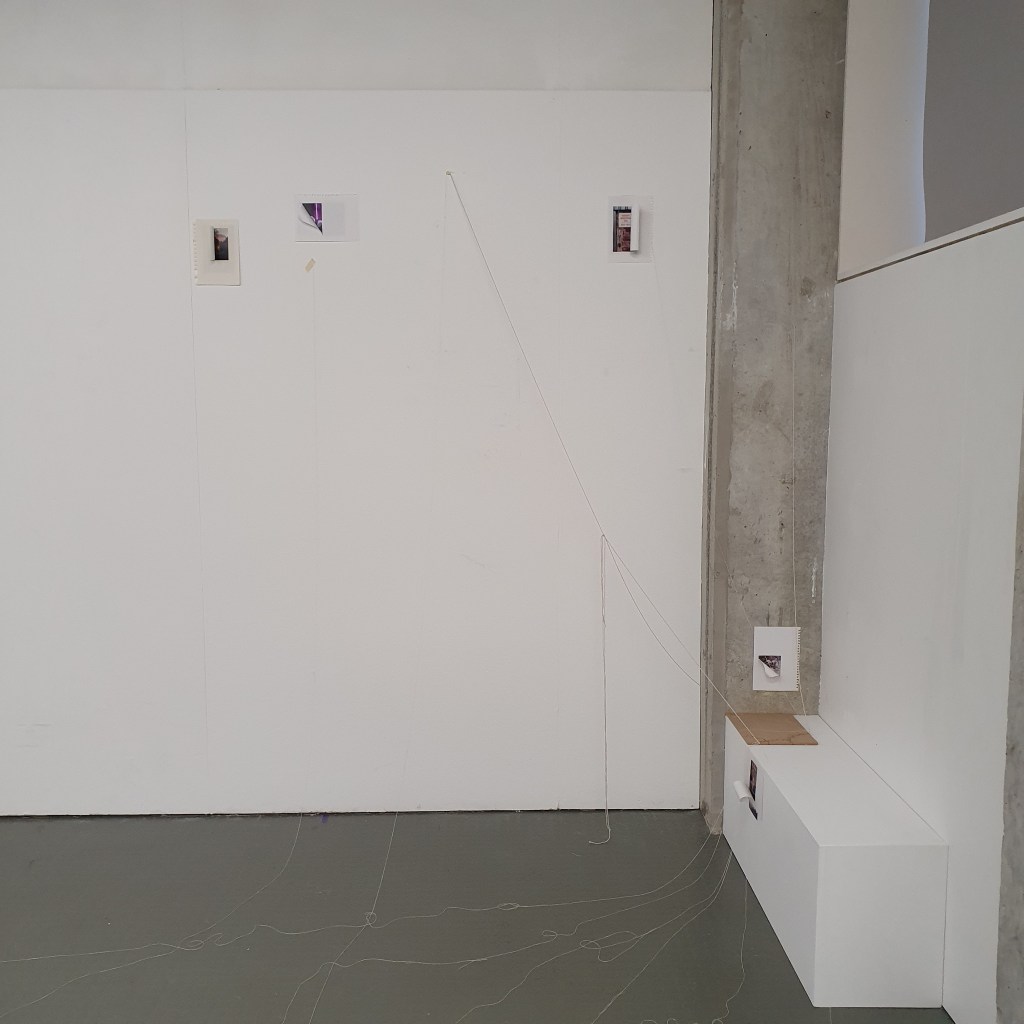 through my uninstallation process i also chose to reimagine the idea of a continuuos journey of the string thread and how this constant moving and never being tied down completely is the soul purpose of our being and we were made to grow, made to change, and made to change other people and things around us. Through the use of string in my presentaion i though it would be interesting to use this idea of connection and change and push it to an extreme. comepletly covering the internal space of the room where i presented and housed my collection of work i began to unravel, float, throw, knot, walk with, walk around, walk over, and just be with a series of different strings of tread. to see how the space would change, how my vision of the space would change. how through the use of something so small and something so commonly used in our day to day living the themes, ideas and goals of my research can be realised. less is more.